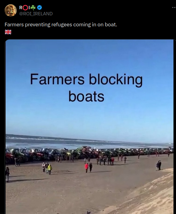 An image of tractors lining the shoreline on a beach is being shared with misleading claims it shows farmers attempting to block small boats from arri
