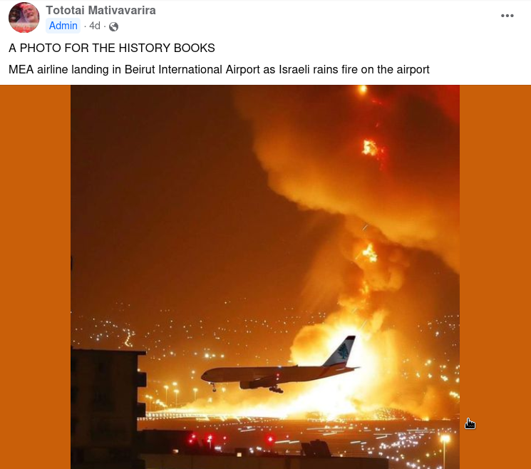 An image supposedly showing a plane landing at an airport in Beirut, Lebanon during recent Israeli airstrikes has been shared with claims it shows...