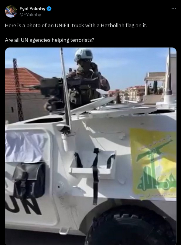Image Showing UN Vehicle With Hezbollah Flag Is Missing Context