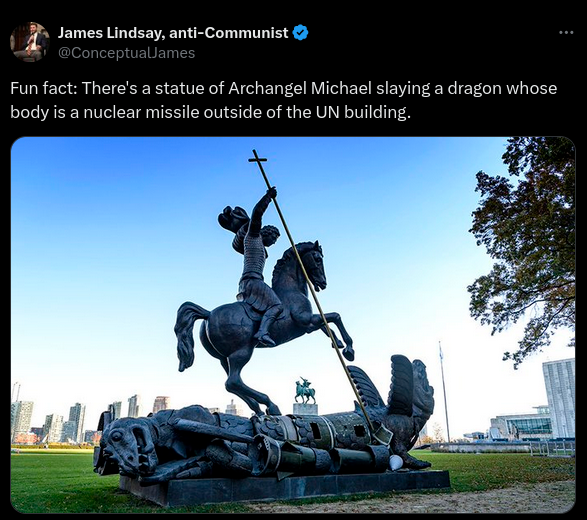 Image Shows Statue Of St. George, Not St. Michael, Outside UN Building