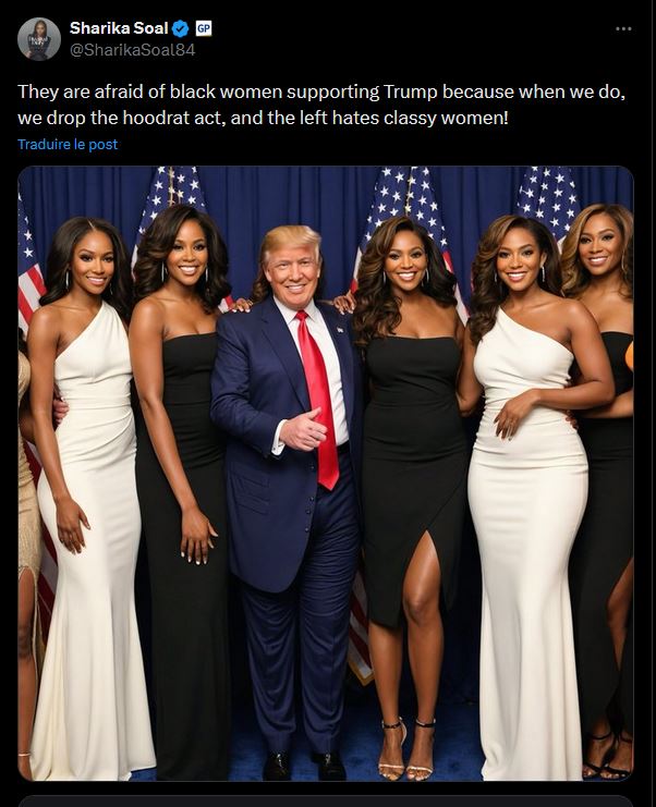 An image that generated thousands of interactions on social media claims to show Donald Trump surrounded by smiling Black women in evening gowns....