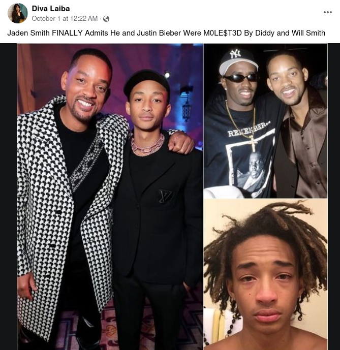 Did musician Jaden Smith announce that his father, actor Will Smith, and rapper mogul Sean "Diddy" Combs "molested" pop singer Justin Bieber and...