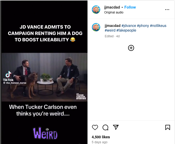J.D. Vance did not admit to Tucker Carlson that his dog was rented