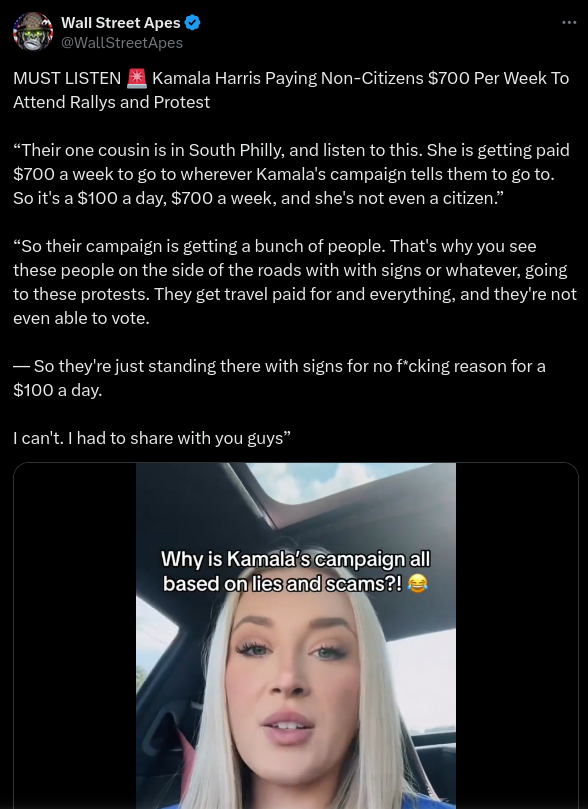 Kamala Harris’ campaign isn’t paying people $700 a week to attend its events