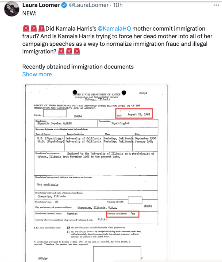 Kamala Harris's Mother Did NOT Lie In Immigration Application