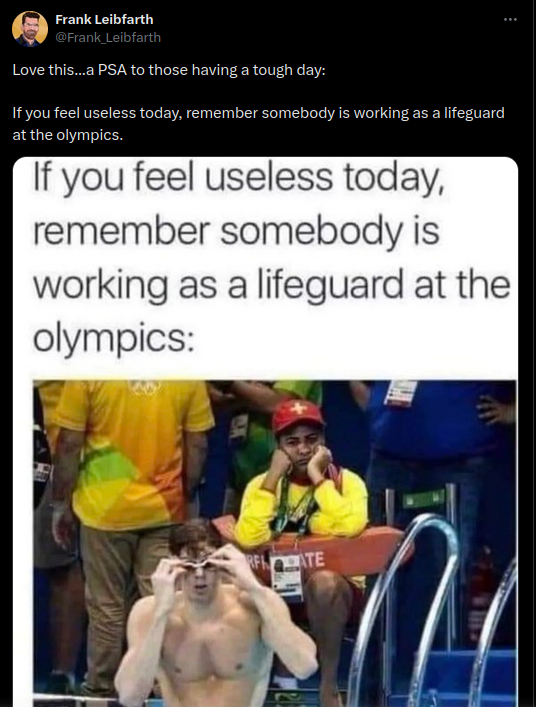 After the Paris Olympics began in late July 2024, a meme went viral making fun of the notion that professional lifeguards are present at Olympic swimm