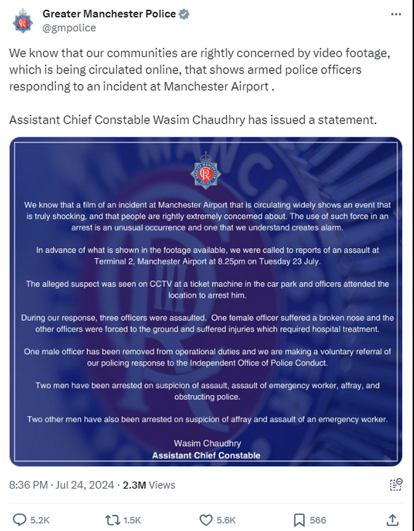 Sept 27 - Investigations into a violent incident involving police at Manchester Airport in July are ongoing as of Sept. 25, contrary to people...