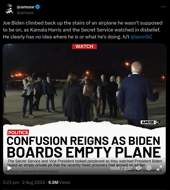 Social media posts claim Joe Biden boarded an empty plane after Americans arrived home as part of a prisoner swap with Russia. This is misleading;...