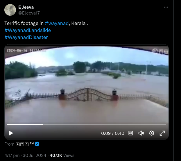 Month-old timelapse video falsely linked to 'flooding in southern India'