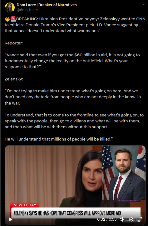 Months-old comment by Zelenskiy on J.D. Vance shared in July 2024