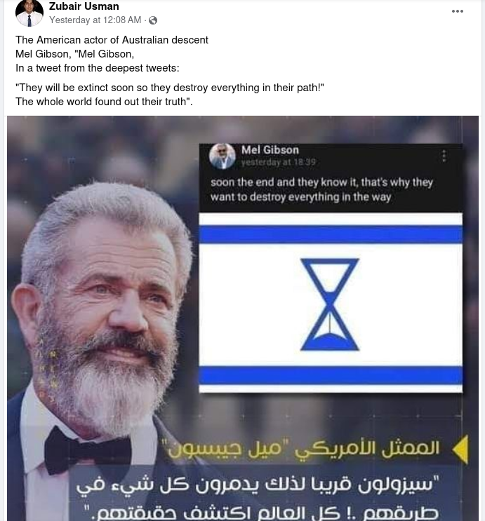 No, actor Mel Gibson did not post about 'the end of Israel' on social media