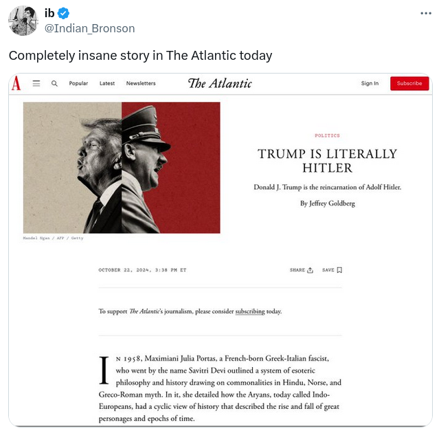 A viral image purporting to show an article from The Atlantic circulated on X Oct. 22 and was quickly amplified by the social media platform’s...