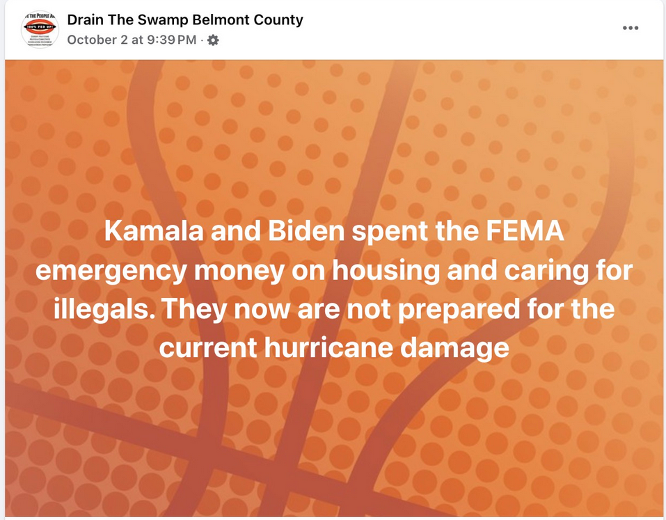 An Oct. 2 Facebook post claims President Joe Biden and Vice President Kamala Harris redirected funds meant for disaster relief...