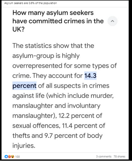 There is no evidence asylum seekers in Britain comprise 14.3 percent of suspects in crimes such as murder and manslaughter, contrary to online...
