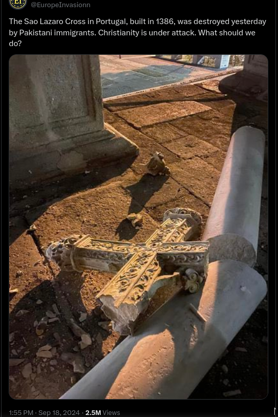 Claims online that Pakistani immigrants were responsible for damaging a historic monument in northern Portugal are baseless, according to local...