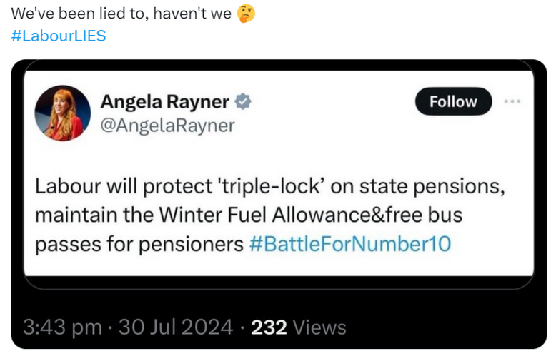 No evidence Rayner promised to maintain winter fuel payment in July 2024