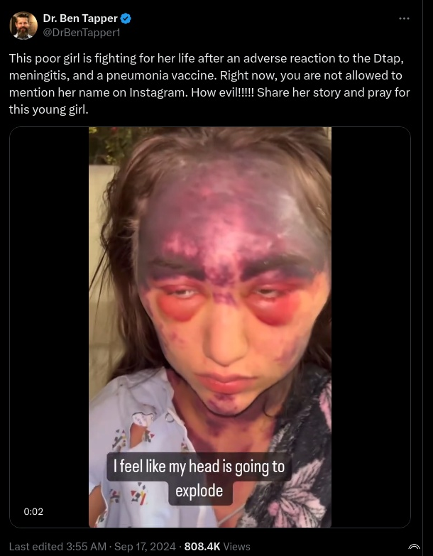 Does a video on social media show a woman named Alexis Lorenze suffering a typical reaction to DTaP, meningitis and pneumonia vaccines? No, that's...