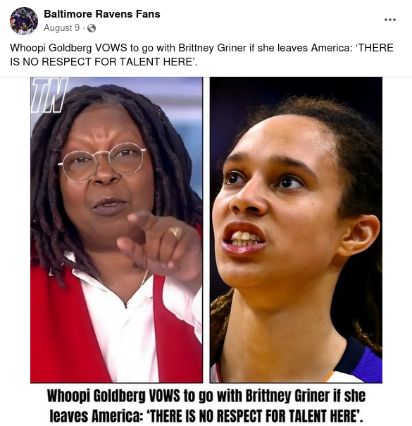 NO Evidence Whoopi Goldberg Vowed To Follow Brittney Griner If Griner Left US