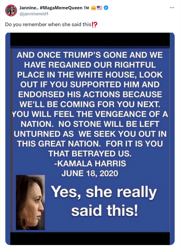 No, Harris Never Said Trump's Supporters Would 'Feel the Vengeance of a Nation'