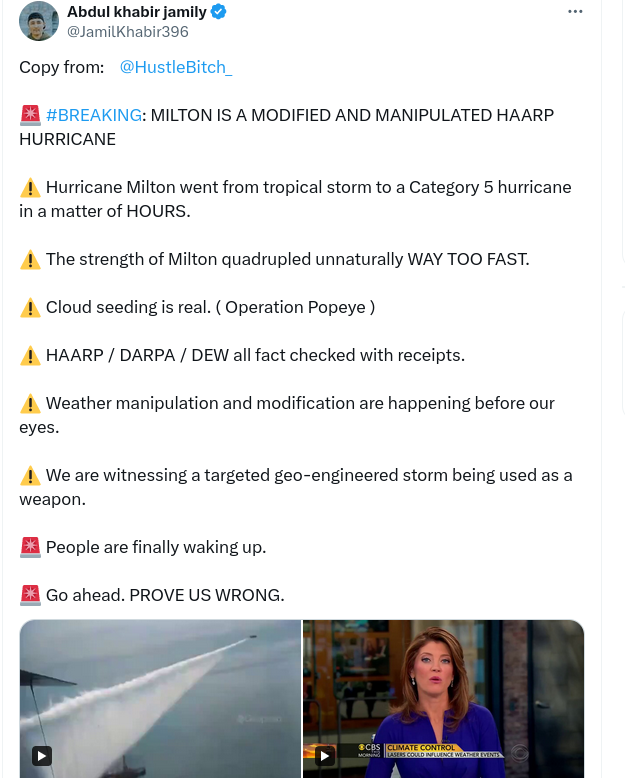 No, Hurricane Milton has not been manipulated by research facility HAARP