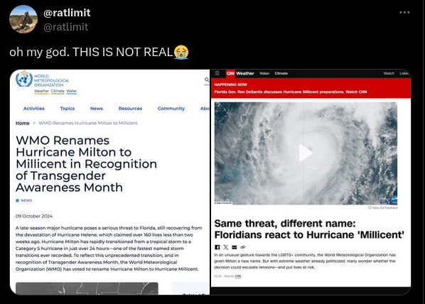 No, Hurricane Milton Was Not Renamed Hurricane ‘Millicent’ In Recognition Of Transgender Awareness Month
