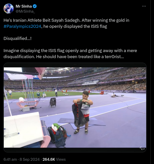 No, Iranian athlete did not display ISIS flag at 2024 Paralympics