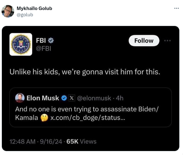 No, this isn’t an authentic FBI post responding to X owner Elon Musk about assassination attempts