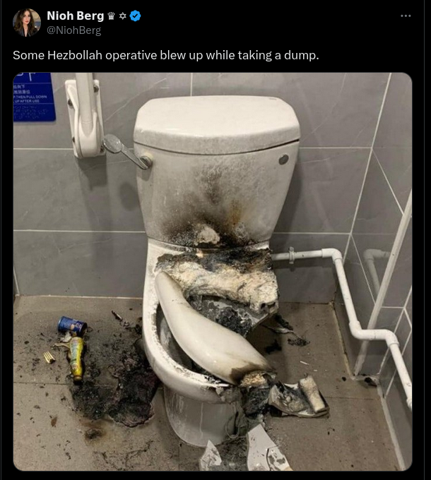 No, this isn’t a photo of a toilet destroyed by an exploding pager
