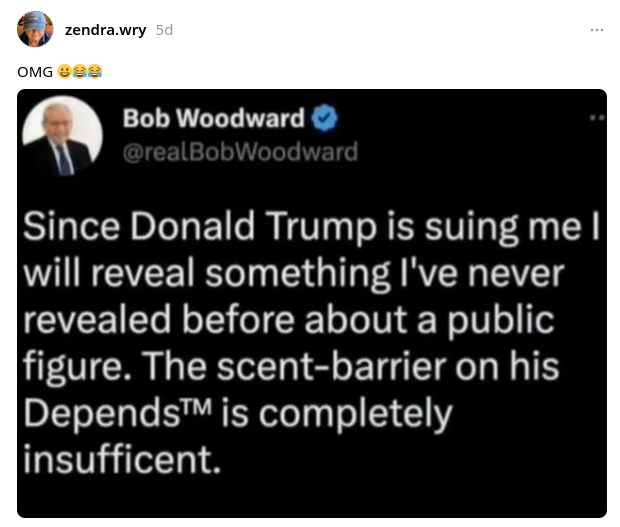 No, journalist Bob Woodward did not post on X about Donald Trump’s adult diapers