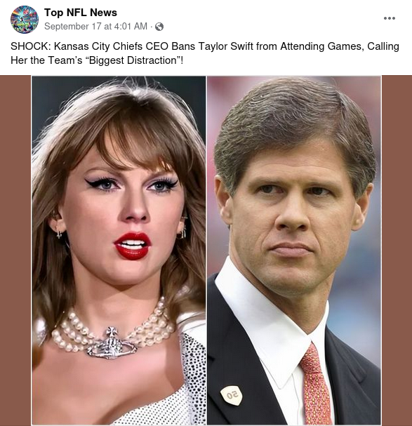 Singer-songwriter Taylor Swift has so far attended both of the Kansas City Chiefs’ games in the 2024 NFL season. But recent Facebook posts claim...