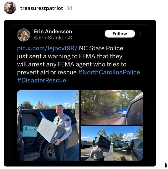 North Carolina State Police warned they will arrest FEMA employees who block Helene aid...