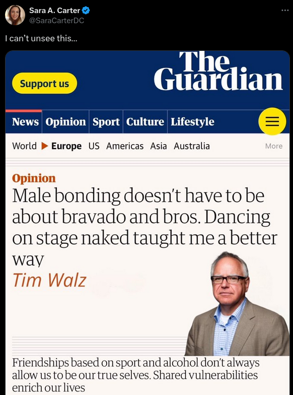 No, Tim Walz did not write a piece in The Guardian on 'naked dancing'