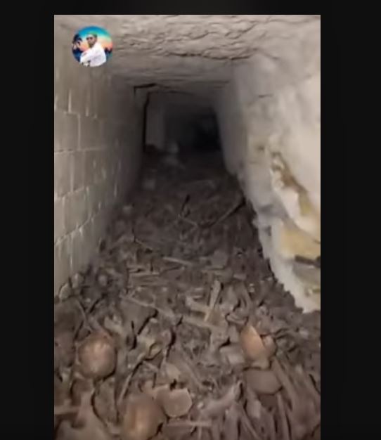A video circulating on social media depicts a dark tunnel filled with what appears to be human skeletal remains. Accompanying the video is a claim...