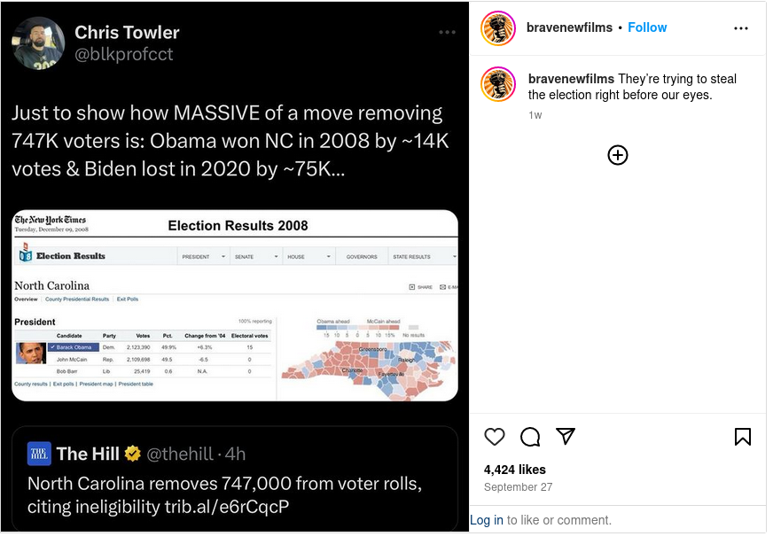 On Sept. 26, North Carolina said it had removed almost 750,000 ineligible people from its voter rolls since January 2023...