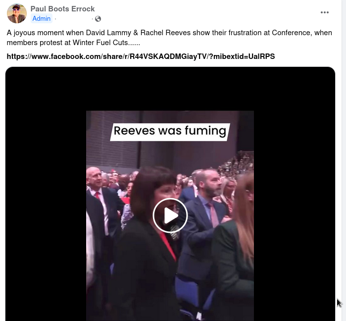 A video of U.K. Chancellor Rachel Reeves is being shared alongside the claim it captures her reaction at the recently held Labour Party...