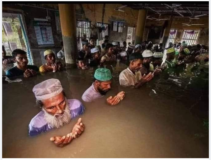 Old image of Muslims offering namaz in water linked to 2024 Bangladesh floods