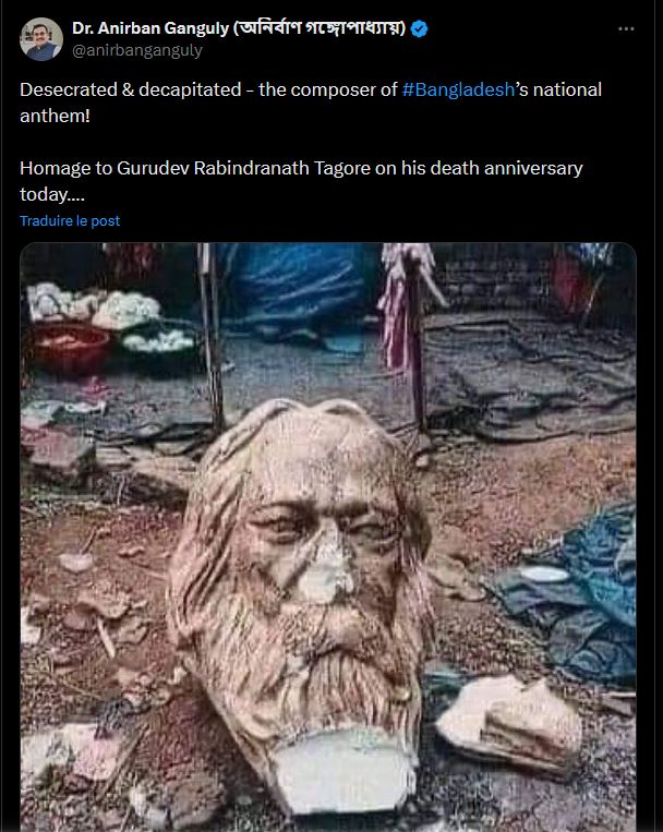 Old photo of vandalized Rabindranath Tagore statue linked to 2024 Bangladesh unrest