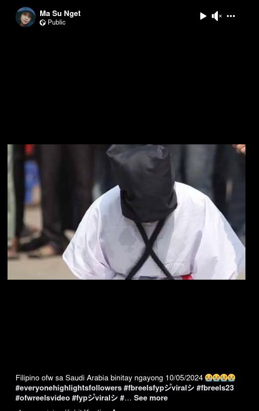 Philippine officials announced that a Filipino worker was executed in Saudi Arabia in October 2024 but a circulating video does not show the...