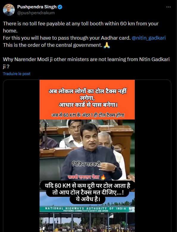 Old speech by Indian minister Gadkari viral with misleading toll tax exemption claim
