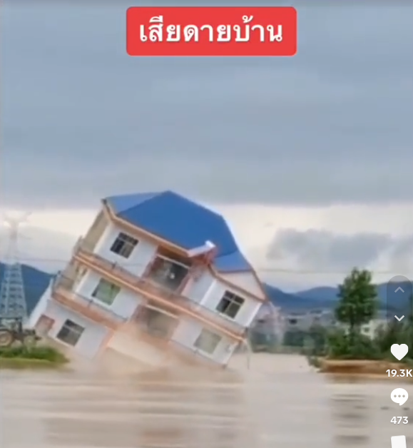 Old video of collapsing house in China falsely linked to Thai floods