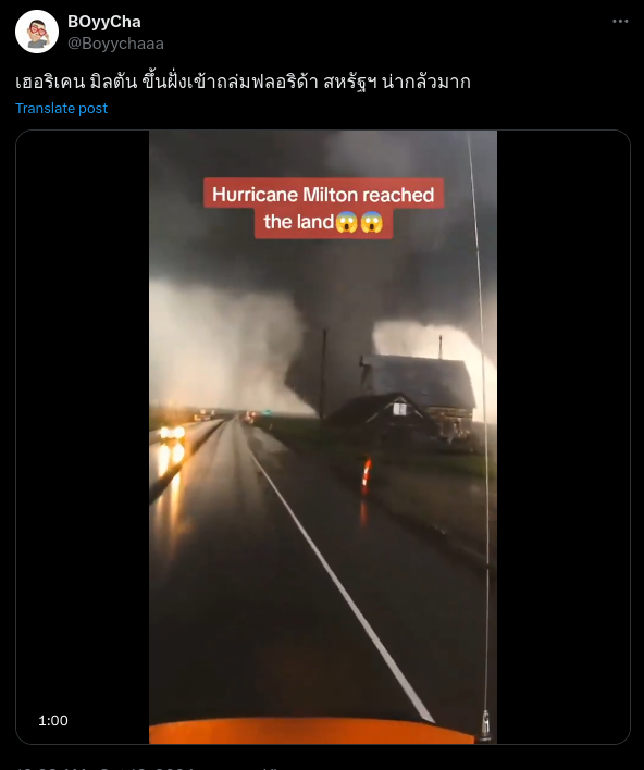Old video taken by storm chaser falsely shared as Hurricane Milton hitting Florida