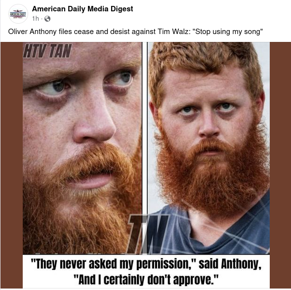 Oliver Anthony Filed Cease and Desist Order Against Tim Walz to 'Stop Using My Song'?