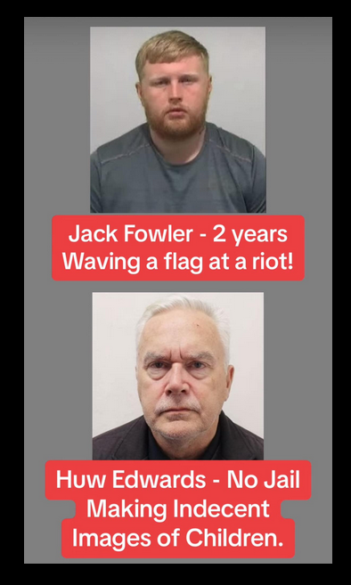 Online posts misleadingly compare U.K. riot jail terms to Huw Edwards' sentence