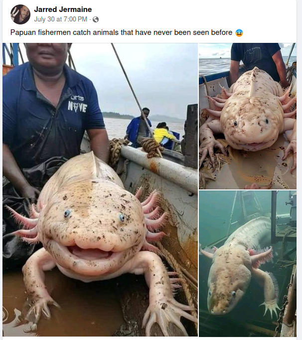 Starting in July 2024, a set of images purportedly showing giant axolotl-like creatures both in a fisherman's boat and underwater circulated on...