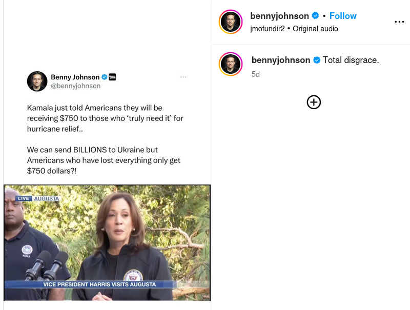 An Oct. 2 Instagram post by conservative commentator Benny Johnson includes a clip of Vice President Kamala Harris talking about financial...