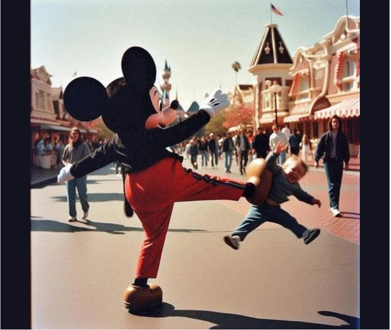Photo Shows Mickey Mouse Dropkicking Toddler at Disneyland for Being Called 'Annoying'?