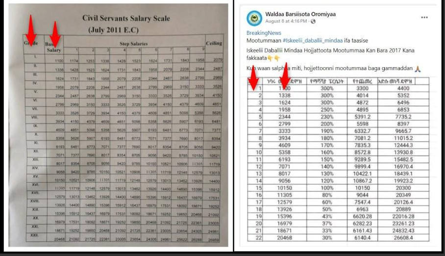 Post falsely claims to show official new salary hikes in Ethiopia’s public sector