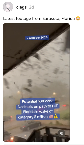 Post falsely claims storm video shows Milton in Sarasota