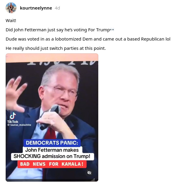 Post Misrepresents Fetterman’s Remarks About Trump Support in Pennsylvania
