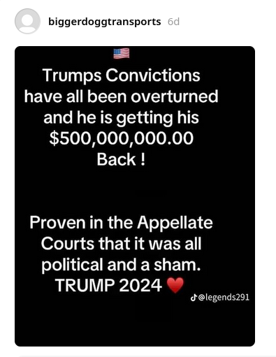 Post wrongly claims Trump conviction 'overturned' in October